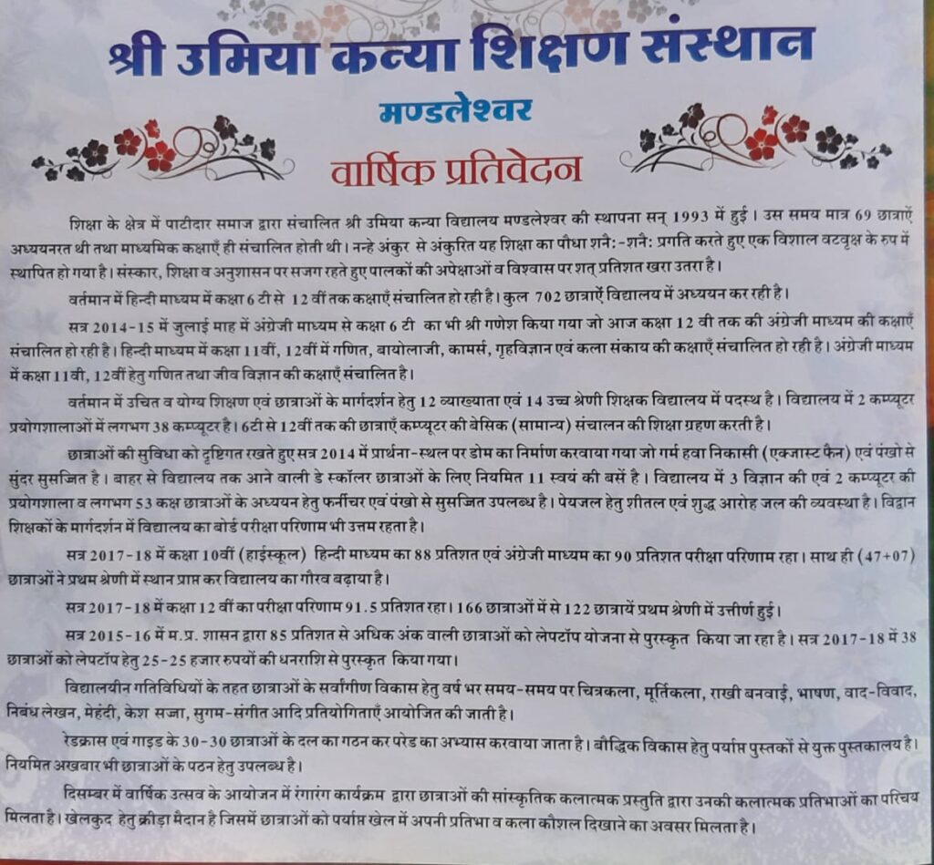 (Reg. IND/4231/1993) Umiya Trust, Mandleshwar